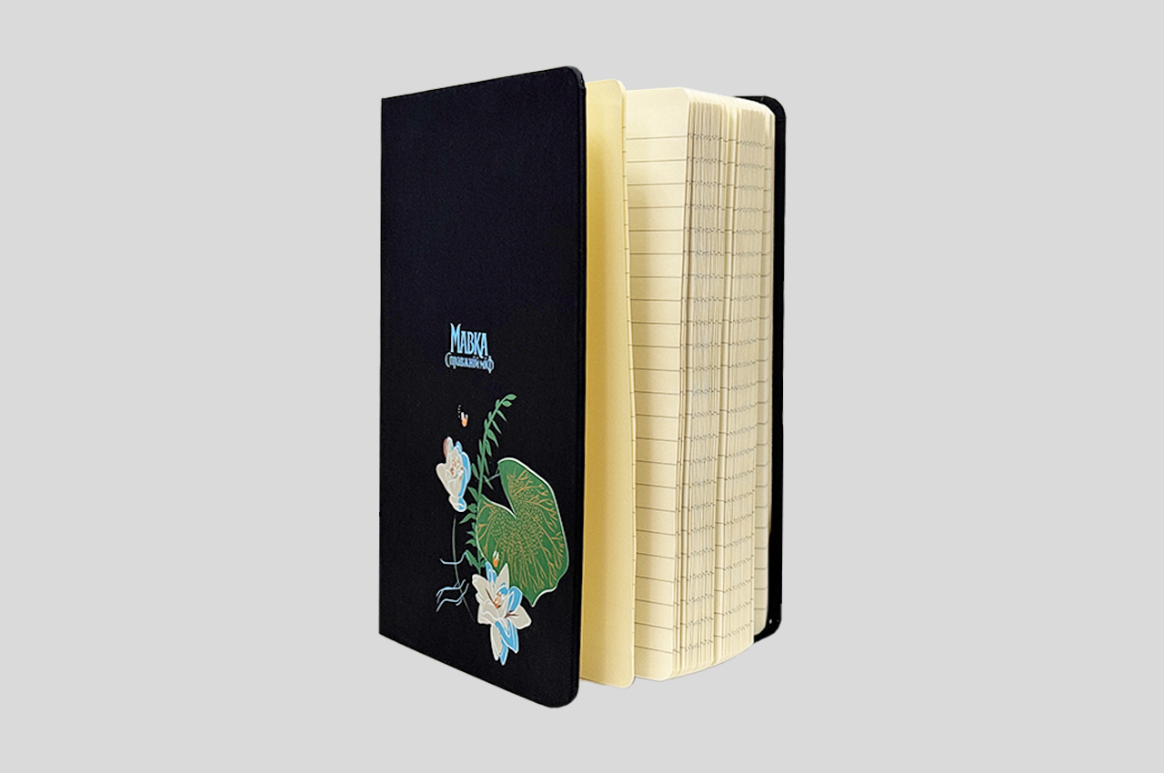 The pattern of the notebook was created by the Kinoshop team based on ferns and water lilies - important symbols of the romantic fantasy "Mavka. The True Myth"