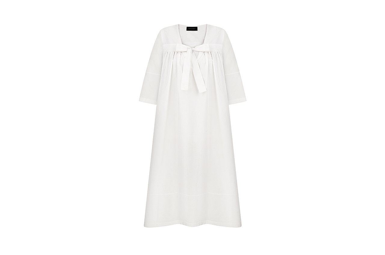A ligh long night shirt with a loose cut with a decorative bow on the front and pockets in the side seams from the Ukrainian brand DRESSTOIMPRESS.