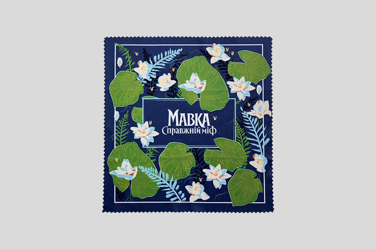 The pattern of the eyeglasses cleaning cloth was created by the Kinoshop team based on ferns and water lilies - important symbols of the romantic fantasy "Mavka. The True Myth"