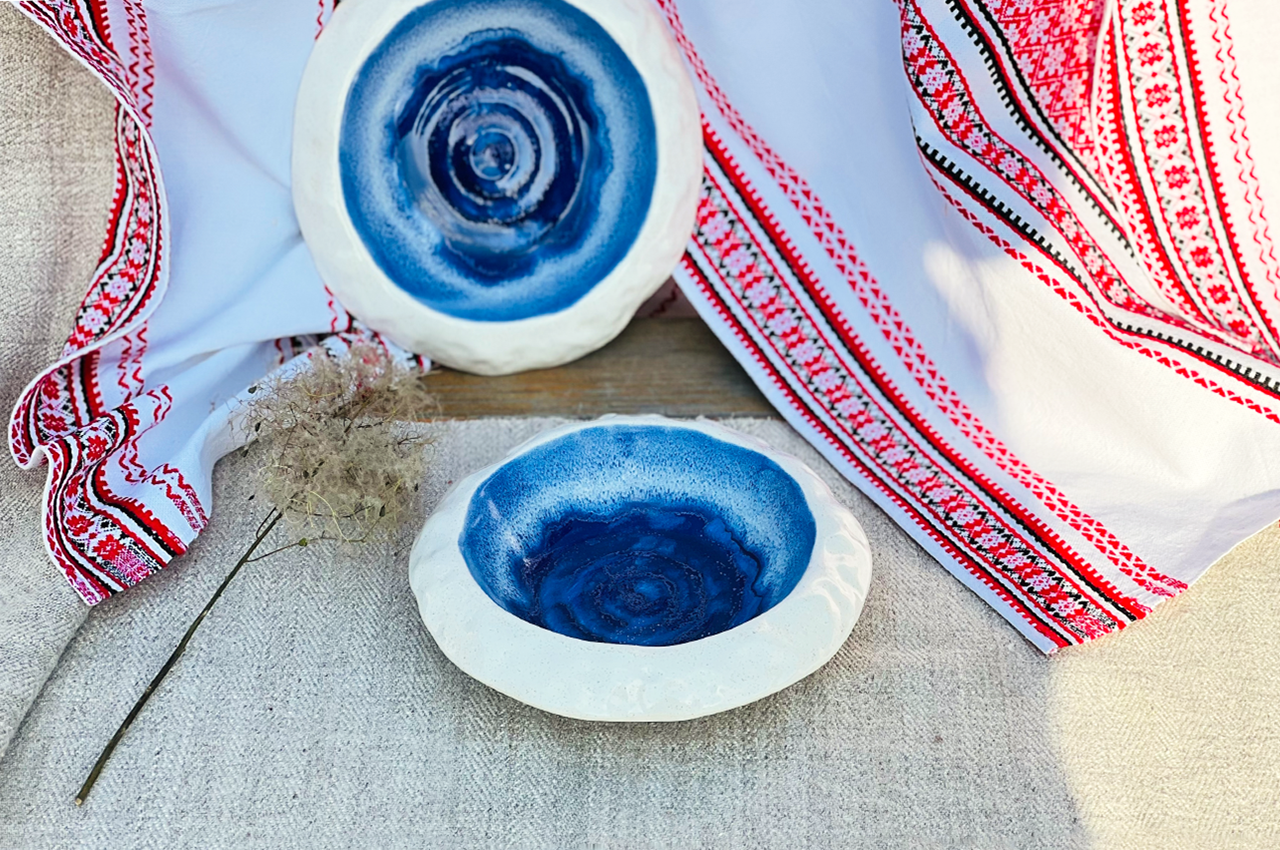 Color: Deep blue, white