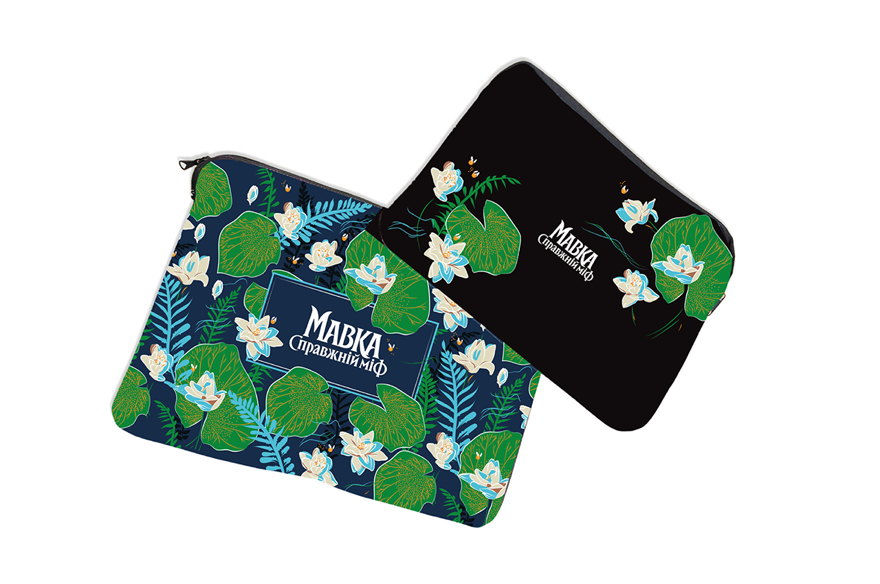 Ця атласна косметичка — мов відблиск місячного світла на воді. Гладка, мʼяка на дотик, вона зберігає не лише косметику, а й настрій тиші та внутрішнього спокою. Ботанічний мотив із лататтям і папороттю відсилає до водяних садів, де міф живе в кожному русі.