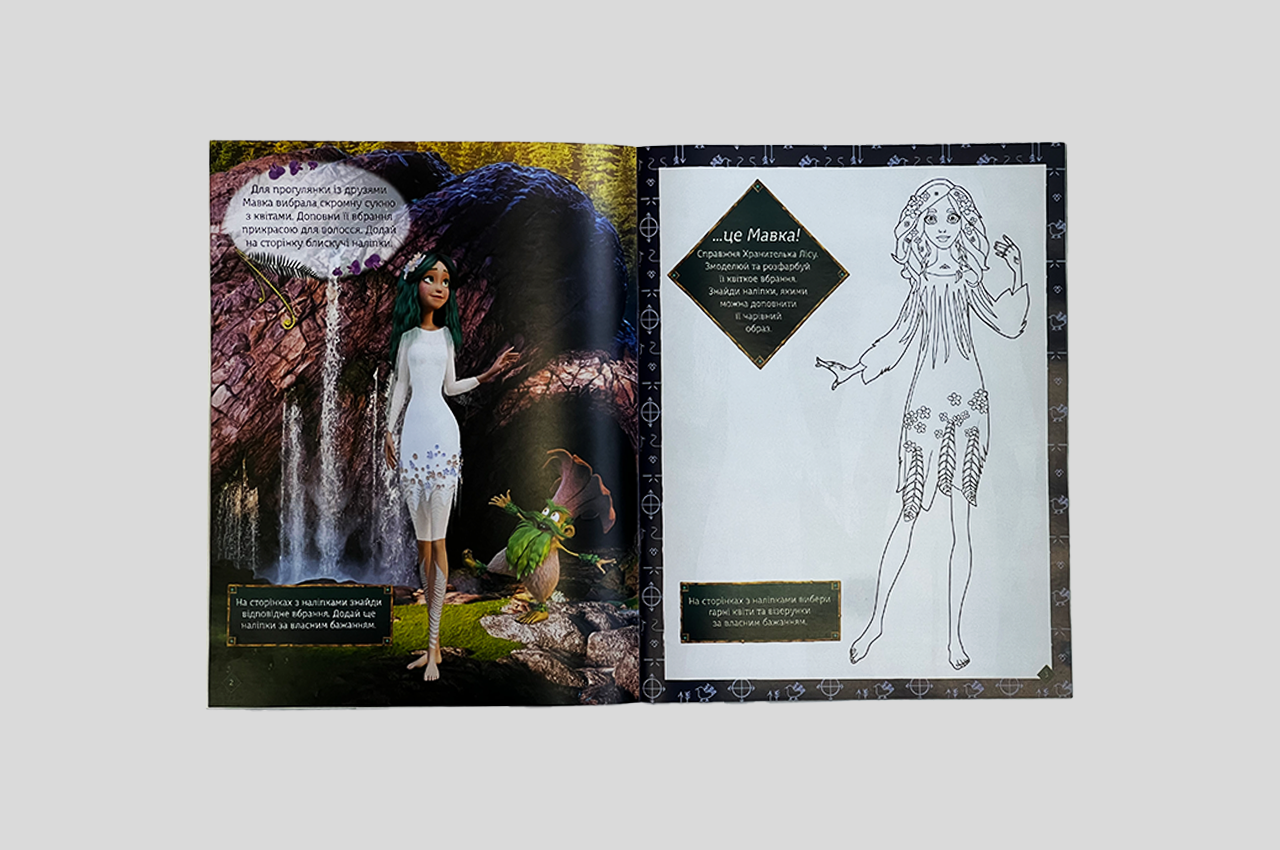 Таємничий Ліс сповнений загадок і неймовірних пригод. Допоможи лісовим мешканцям та їхнім друзям створити неперевершені образи, вибрати вбрання і розгадати всі головоломки. Не стримуй себе: фантазуй, розфарбовуй і клей блискучі наліпки!